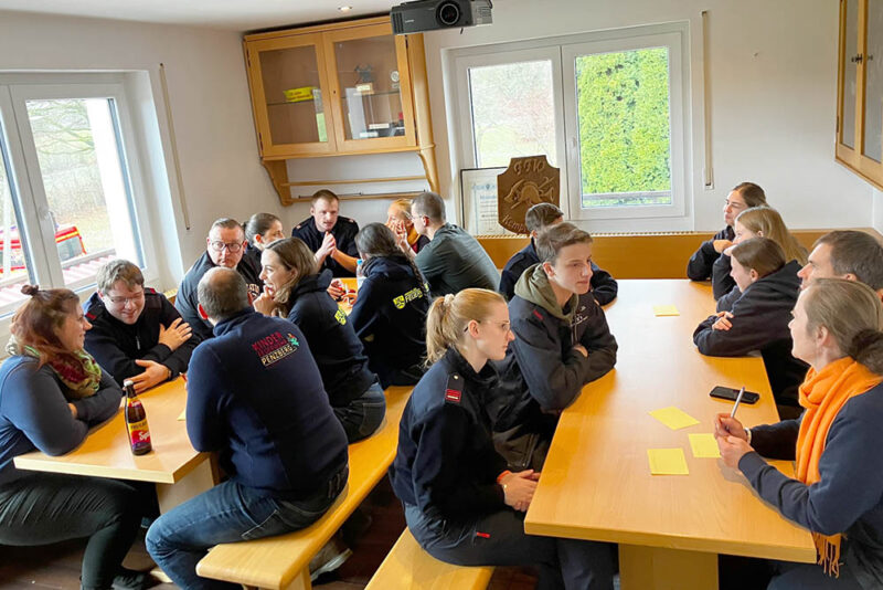 Unser Bezirksjugendwart Benno Dierkes begrüßte die Teilnehmer mit ein paar Grußworten. Dann stellten sich die Teilnehmer kurz vor und beschrieben ihre Aufgaben und Zuständigkeiten in ihrer Kinder- oder Jugendfeuerwehr.