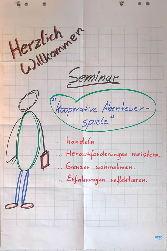 Die Teilnehmer beschreiben zusammen im Unterrichtsraum ihre Erwartungen für die im Anschluss stattfindenden Seminarinhalte.